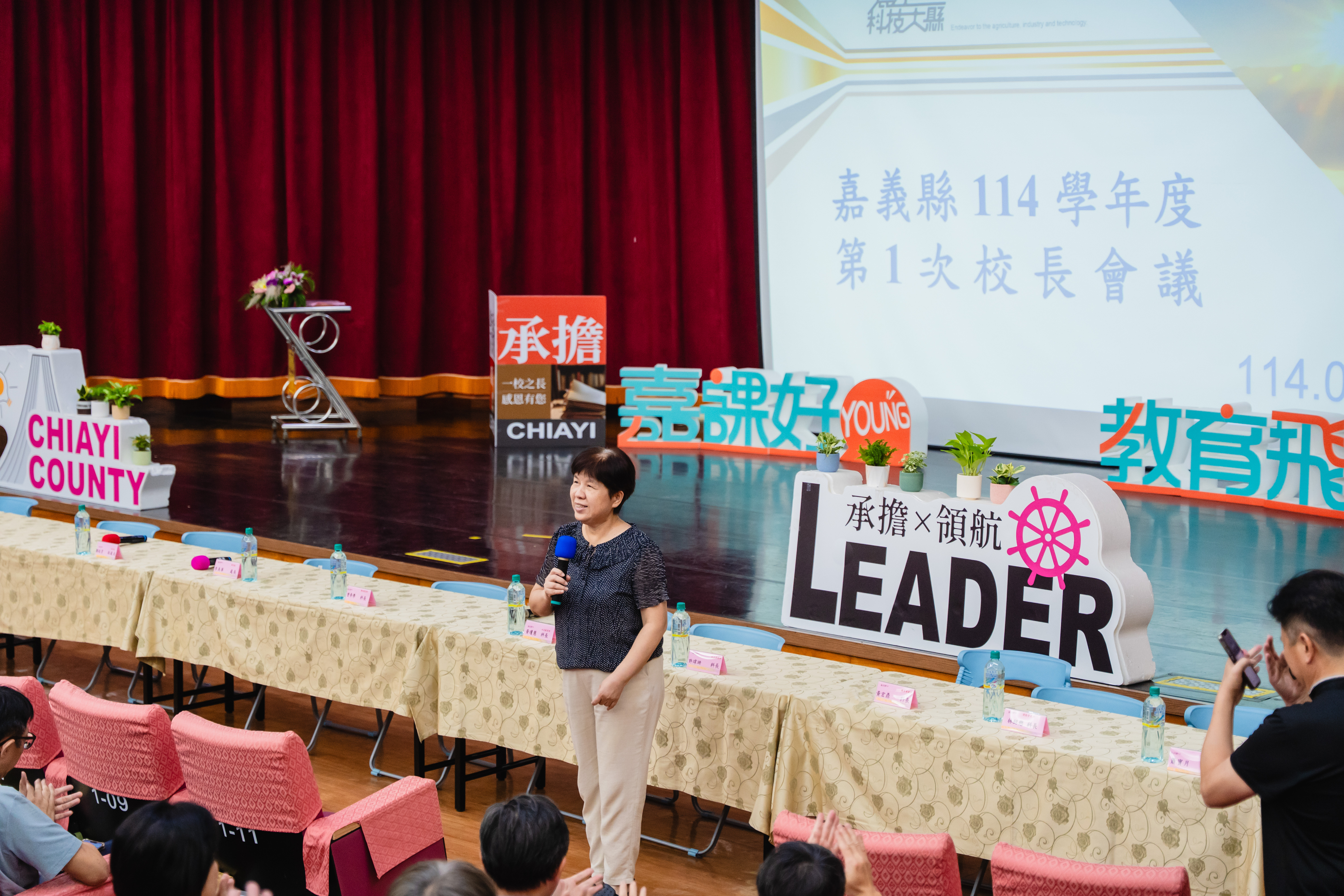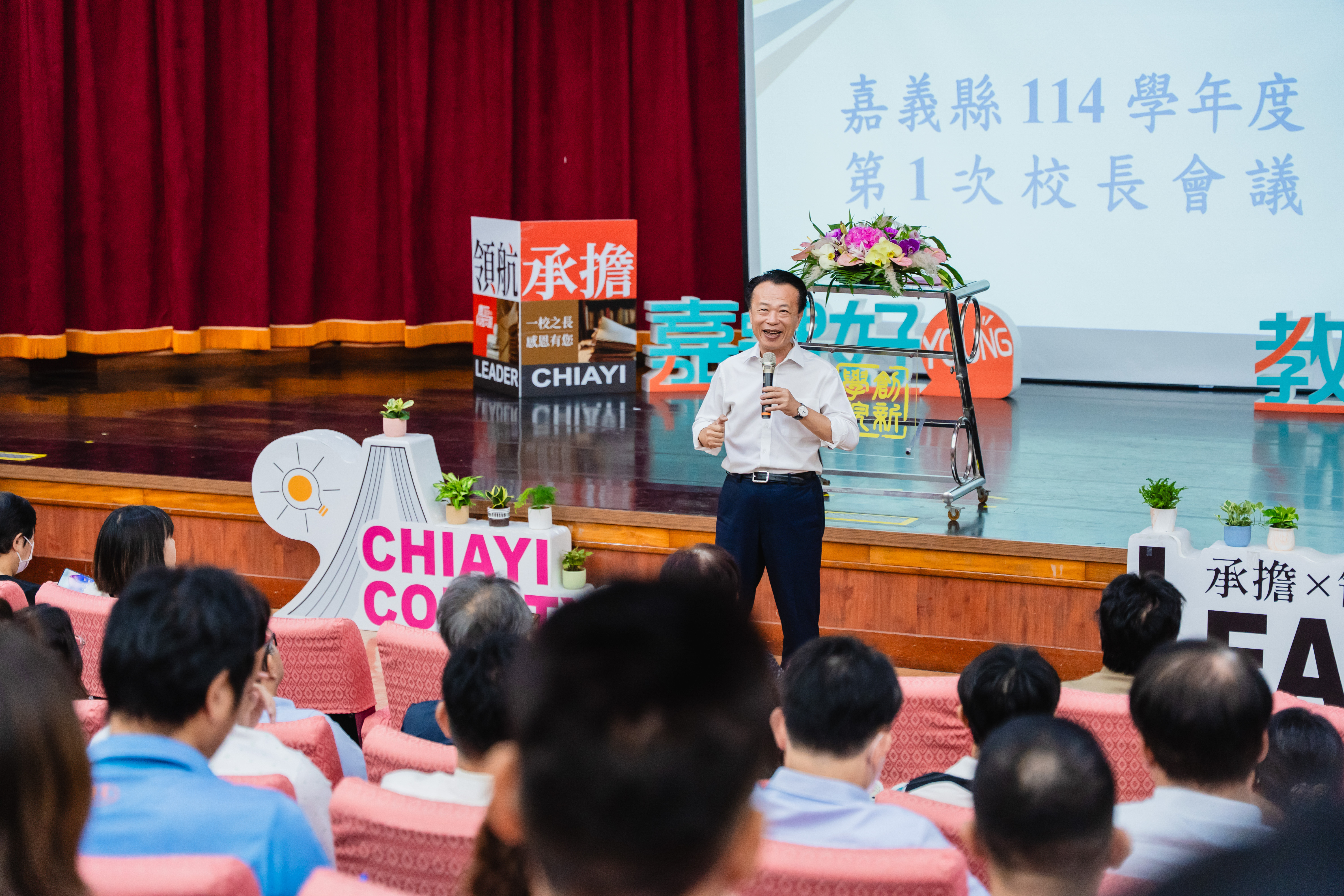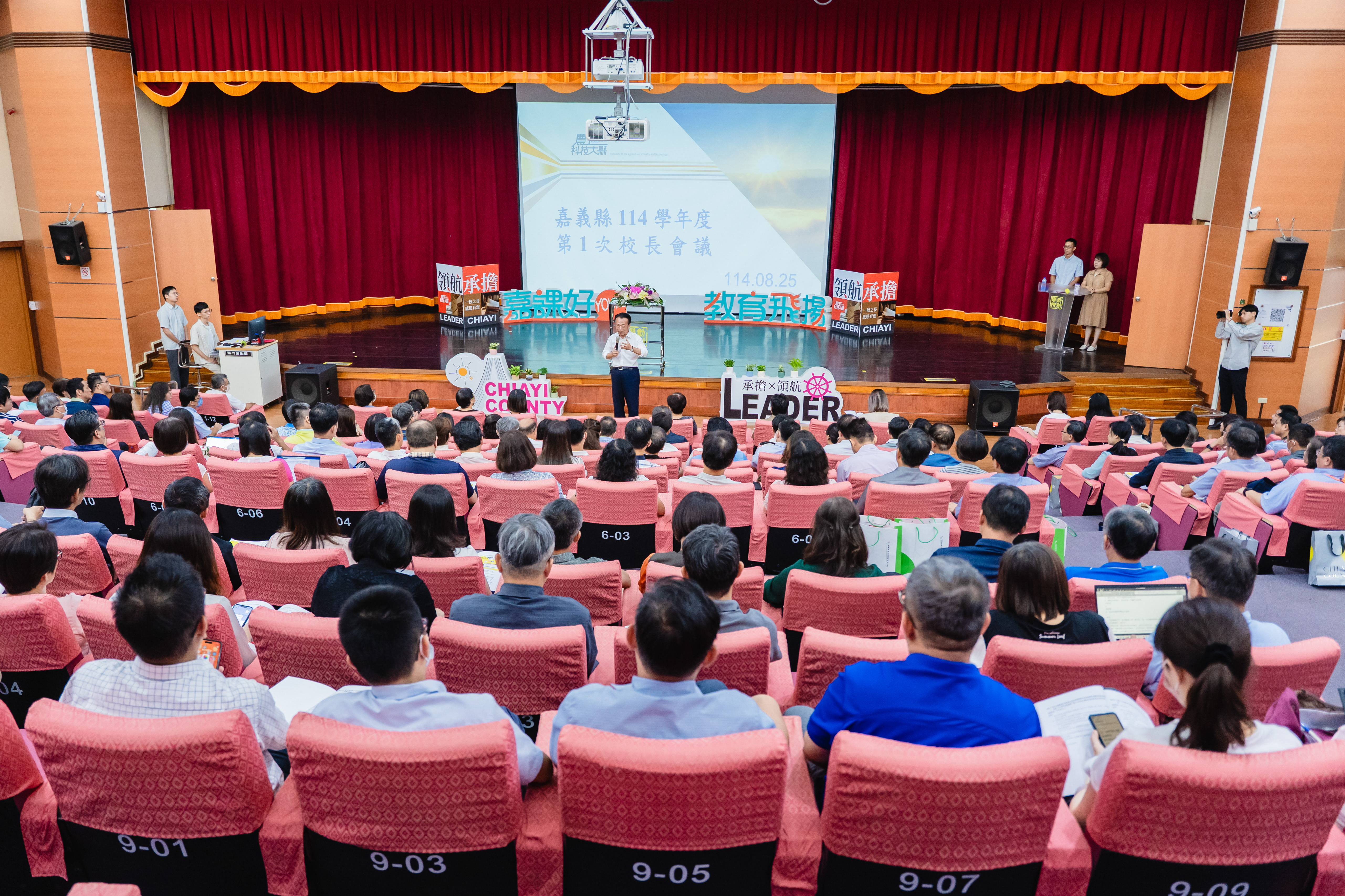 嘉義縣114學年度第1次校長會議今25日舉行,嘉義縣高中、國中、小學校長以及教育處相關人員、聘任督學和候用校長共200人齊聚一堂,縣長翁章梁勉勵校長們繼續為孩子打造紮實多元的學習環境。