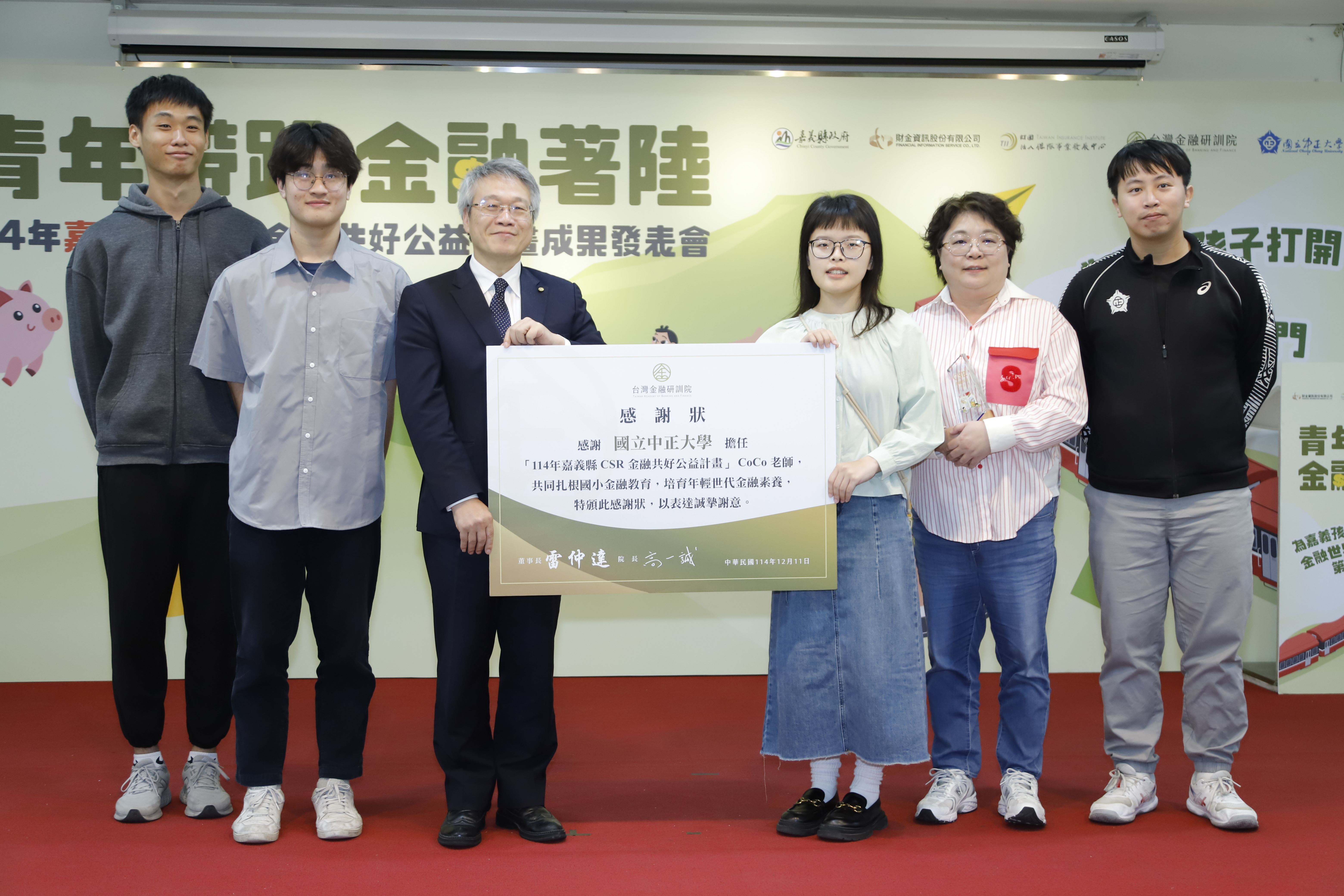 嘉義縣政府與台灣金融研訓院、財金資訊公司、保險事業發展中心及國立中正大學共同推動「114年嘉義縣CSR金融共好公益計畫」,今11日下午在創新學院舉辦成果發表會,計畫成功在8所國小落實60場次金融素養課程,深受學校與師生肯定。